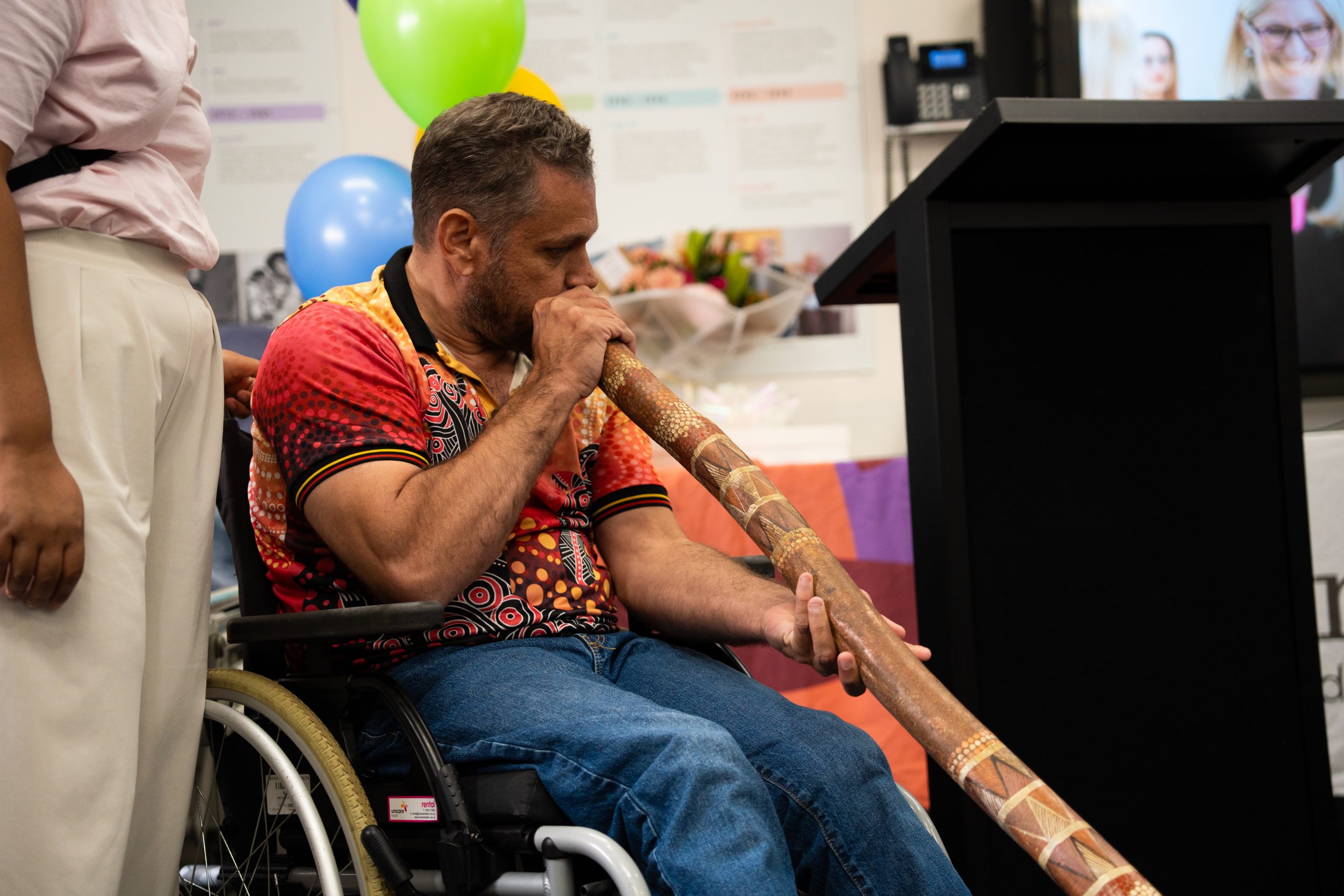 The celebration opened with a moving welcome through music, performed by accomplished artist Greg Barr on the didgeridoo. Nulsen Chairperson Bernadette Celliers then delivered a heartfelt tribute, reflecting on Caroline’s remarkable contribution to Nulsen across more than 27 years of service.